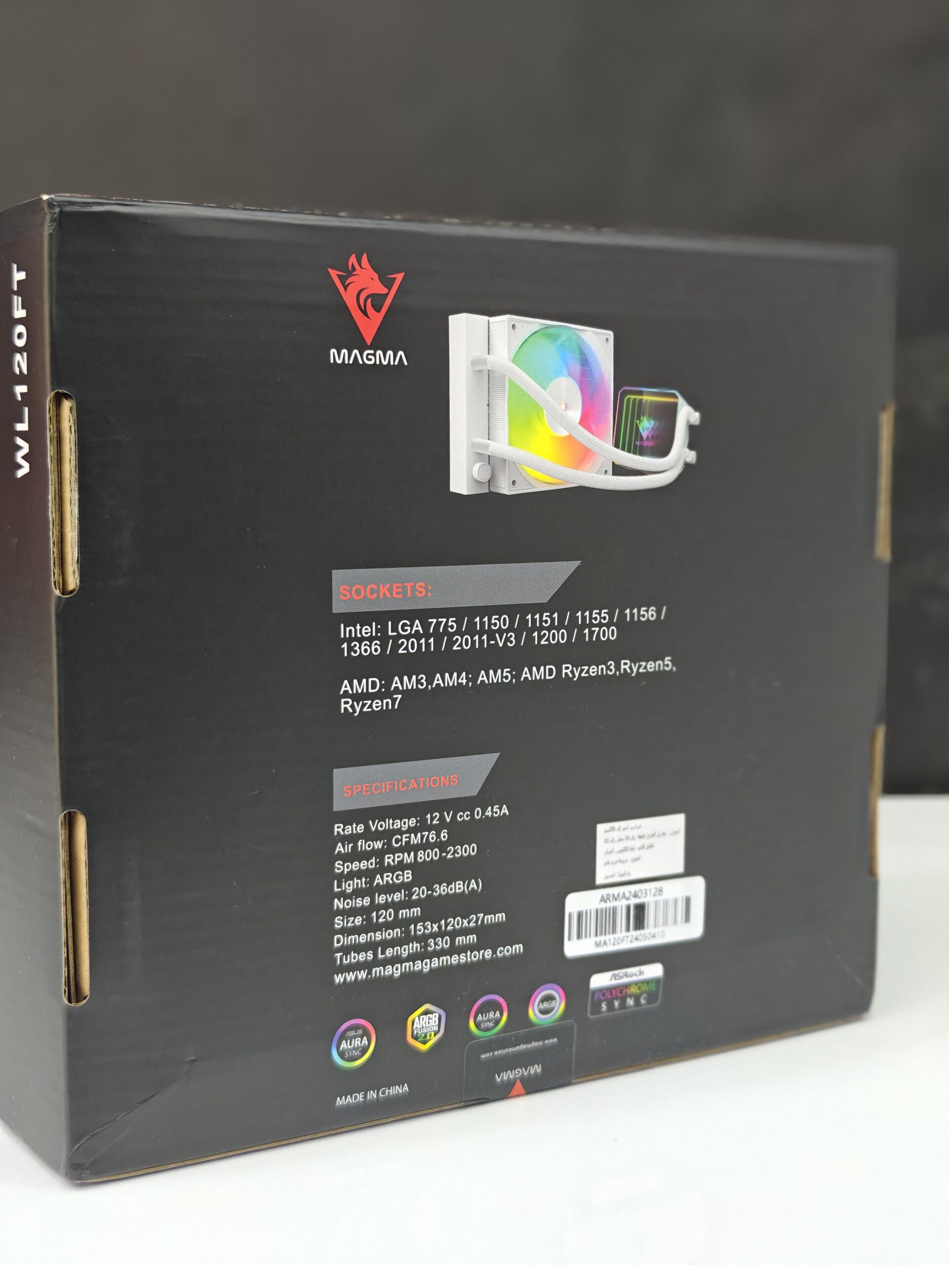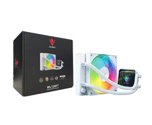 The MAGMA WL120FT ARGB WHITE is a compact and visually striking 120 mm all-in-one liquid cooling solution, built to deliver efficient thermal performance in clean or light-themed PC builds. Designed with an ARGB LED block and matching illumination, the WL120FT adds an aesthetic glow to white or pastel color schemes while quietly managing temperatures under load.