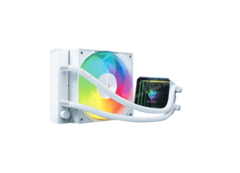 MAGMA WL120FT ARGB WHITE – Compact 120 mm liquid CPU cooler with vibrant ARGB lighting, sleek white design, and efficient cooling for stylish mid-range PC builds.