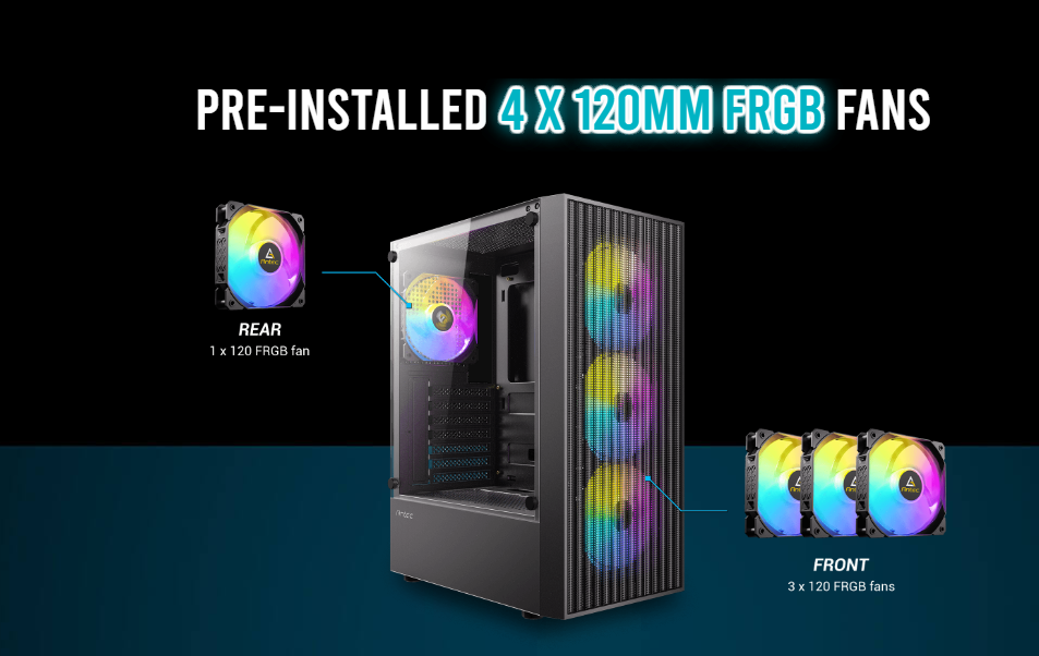 | Pre-Installed Fans | 3 × 120 mm ARGB Front Fans, 1 × 120 mm ARGB Rear Fan |
