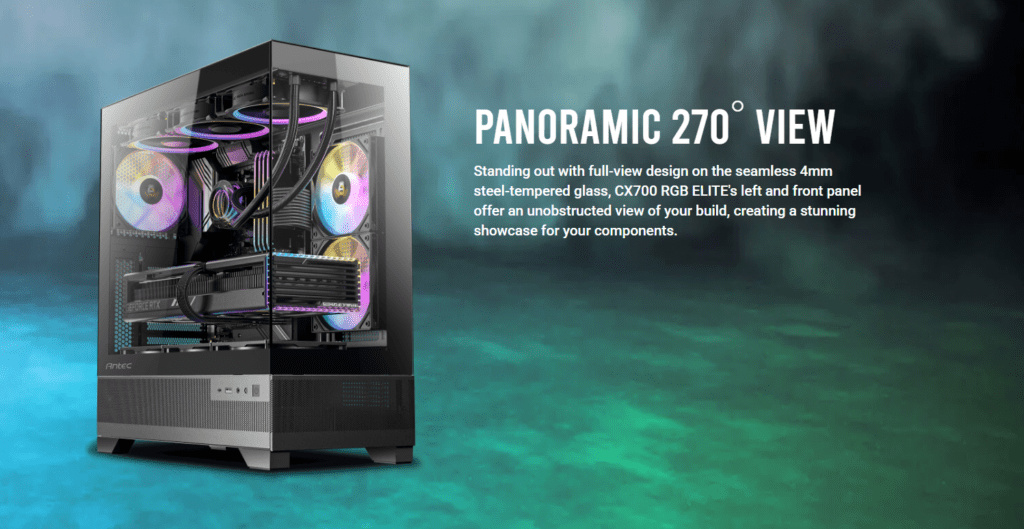 From the outset, the CX700 Elite encourages high airflow thanks to generous fan and radiator mounting options. Out of the box it typically includes front and rear fans, with room to add more at the top and front — supporting up to a 360 mm radiator in the front for advanced liquid cooling or up to 240 mm at the top.