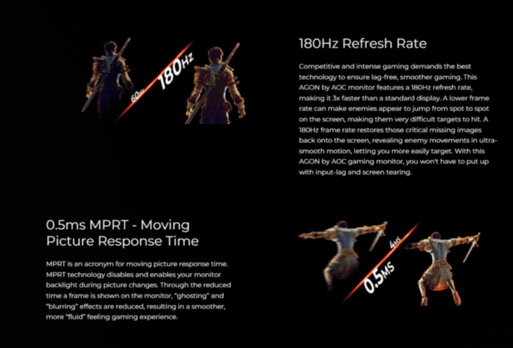 180Hz Refresh Rate for extreme fluidity and superior tracking of fast-moving objects.