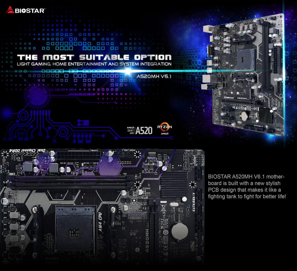 Whether building a budget gaming PC, an office workstation, or a compact everyday system, the BIOSTAR A520 MHP provides a solid balance of features, compatibility, and reliability.