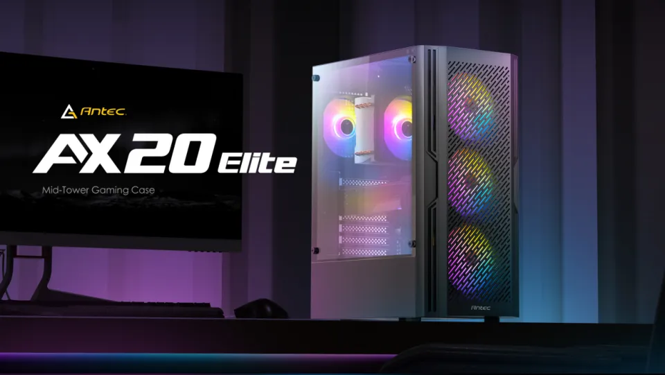 The Antec AX20 Elite is a high-style and high-performance mid-tower gaming case built for modern PC builds. With its sleek black frame, tempered-glass side panel and four pre-installed 120 mm RGB fans, this chassis provides both visual impact and excellent airflow right from unboxing.