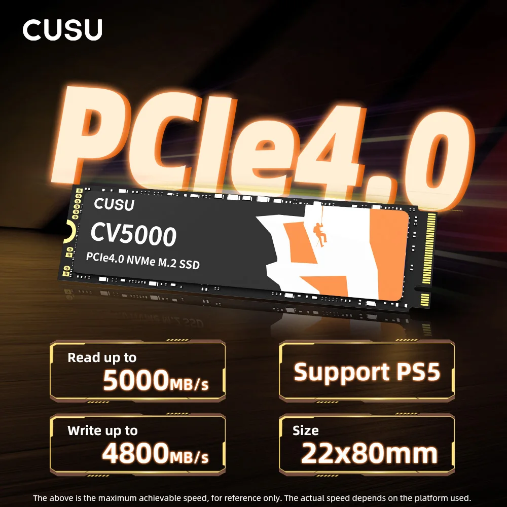 The CUSU CV5000 NVMe 1TB is a high-performance storage upgrade built around the PCIe 4.0 ×4 interface, delivering sequential read speeds up to ~5,000 MB/s and write speeds nearing ~4,800 MB/s. With a 1TB capacity, it’s ideal for gamers, content creators, and power users who demand fast boot times, rapid load screens, and responsive system performance.
