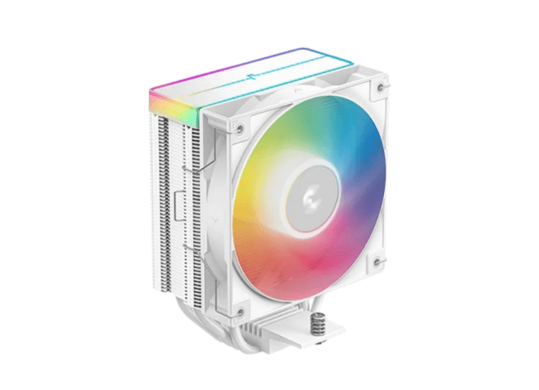 The DeepCool AG400 ARGB V2 (White) is a high-performance single-tower CPU air cooler specifically designed to provide elite thermal management for modern Intel and AMD processors. This “V2” edition features a striking all-white aesthetic, including a white-coated heatsink, white mounting hardware, and matching white cables, making it the perfect centerpiece for “snow-white” or clean, minimalist gaming builds.