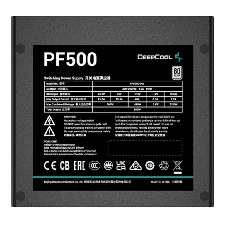 The unit features a stealthy all-black design, including flat black cables that are not only aesthetically pleasing but also highly flexible, making cable management much easier in compact cases. DeepCool has integrated a full suite of industrial-grade protections—including Over-Power (OPP), Over-Voltage (OVP), and Short-Circuit (SCP) safeguards—to protect your internal components from unpredictable electrical issues. The PF500 is a dependable, “plug-and-play” solution for anyone building a modern, value-driven computer system.