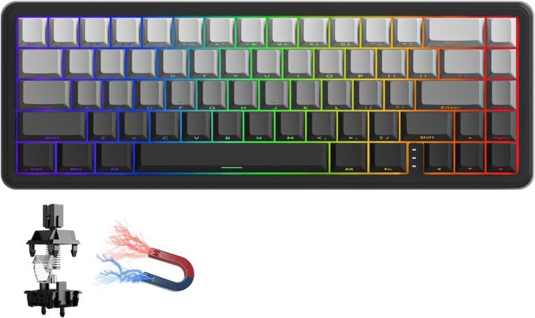 The BAT68 features a robust build with a vibrant RGB backlighting system that can be customized with various effects. Its compact 68-key design saves significant desk space, providing a larger “landing zone” for wide mouse movements—a critical advantage for low-DPI gamers. With its all-black or themed aesthetics, high-quality PBT or ABS keycaps, and a dedicated software suite for fine-tuning magnetic sensitivity, the EWEADN BAT68 is a top-tier “analog” keyboard built for players who demand the fastest possible hardware.