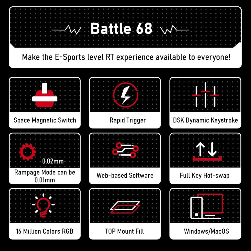 "The EWEADN BAT68 Magnetic delivers elite competitive speed with adjustable Hall Effect switches and Rapid Trigger technology in a space-saving 65% design."