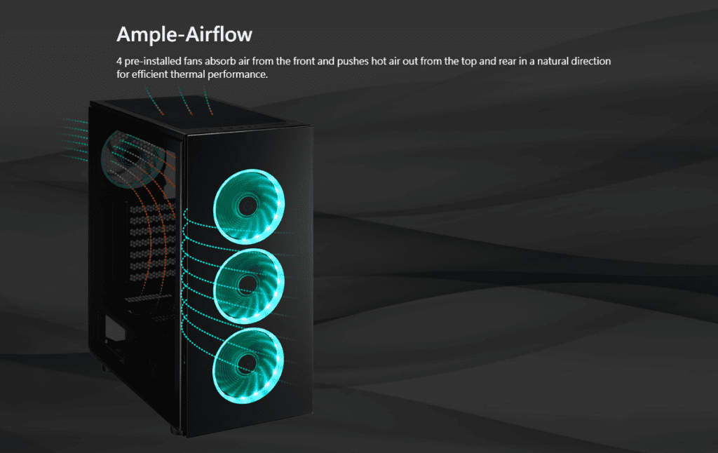 • Four pre-installed 120 mm ARGB fans