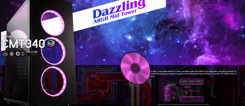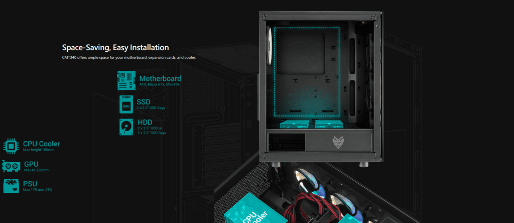 With support for large radiators up to 360 mm, flexible fan mounting options, and high-speed USB 3.0 connectivity on the front panel, the FSP CMT340 is an excellent choice for gamers and builders seeking performance, visual appeal, and easy assembly.