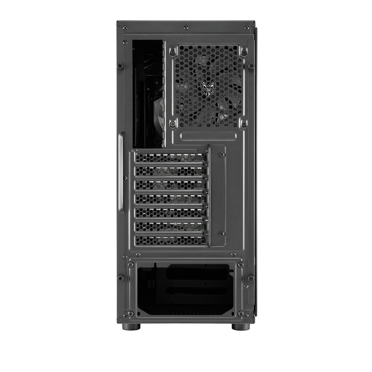• Bottom-mounted ATX power supply with shroud