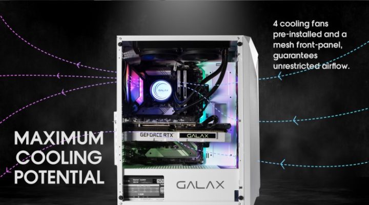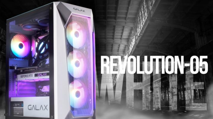 "The GALAX Revolution 05 White combines a sleek mesh-and-glass aesthetic with four pre-installed ARGB fans for elite airflow and a stunning visual presentation."
