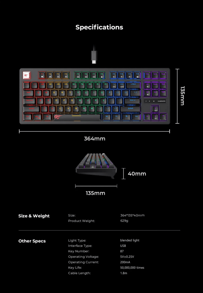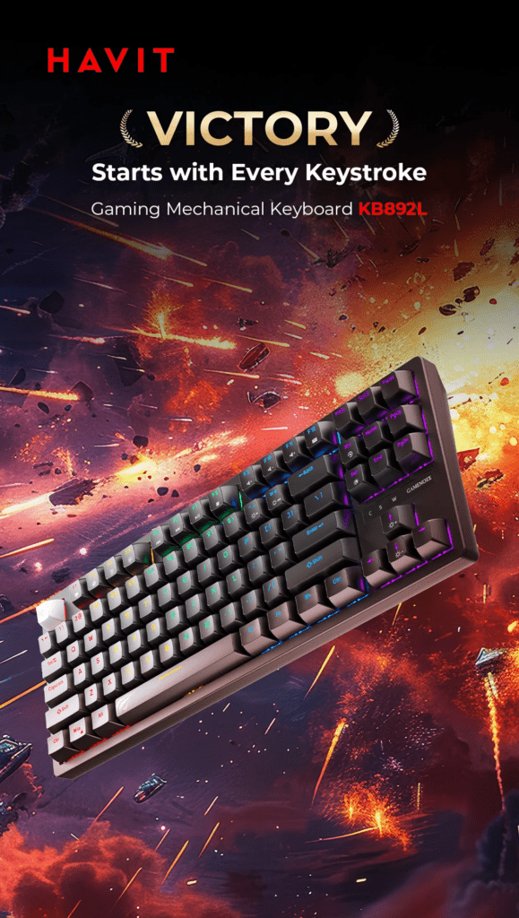 "The HAVIT KB892L delivers a loud, tactile mechanical experience in a space-saving 75% design, perfectly balancing compact size with full functional utility."