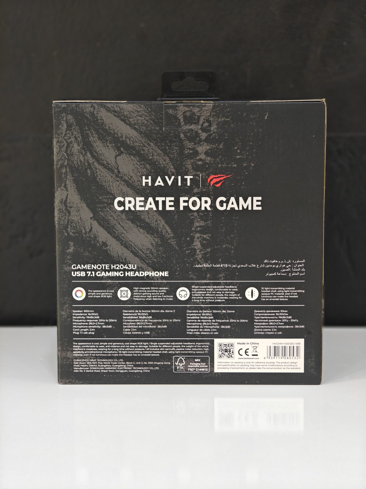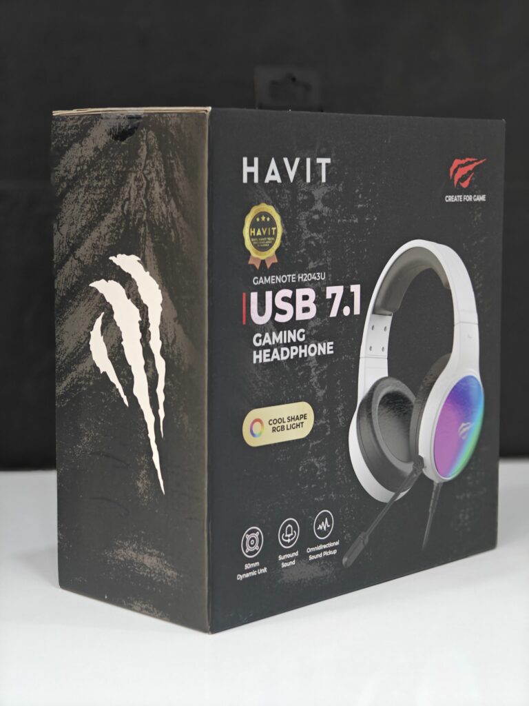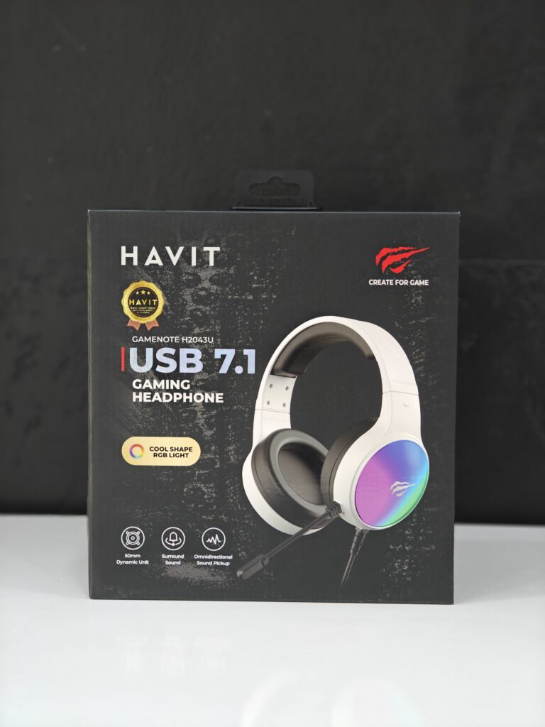 “HAVIT H2043U – RGB gaming headset with 50mm surround drivers, noise-cancelling mic, and USB-powered plug-and-play comfort.”