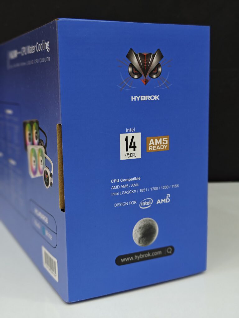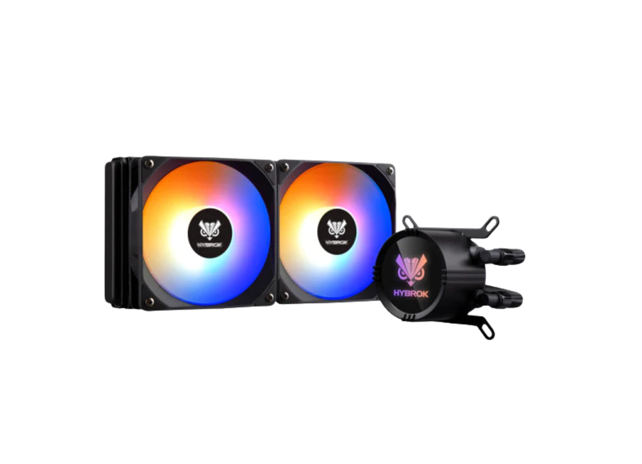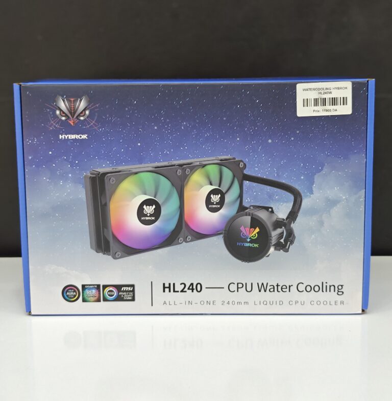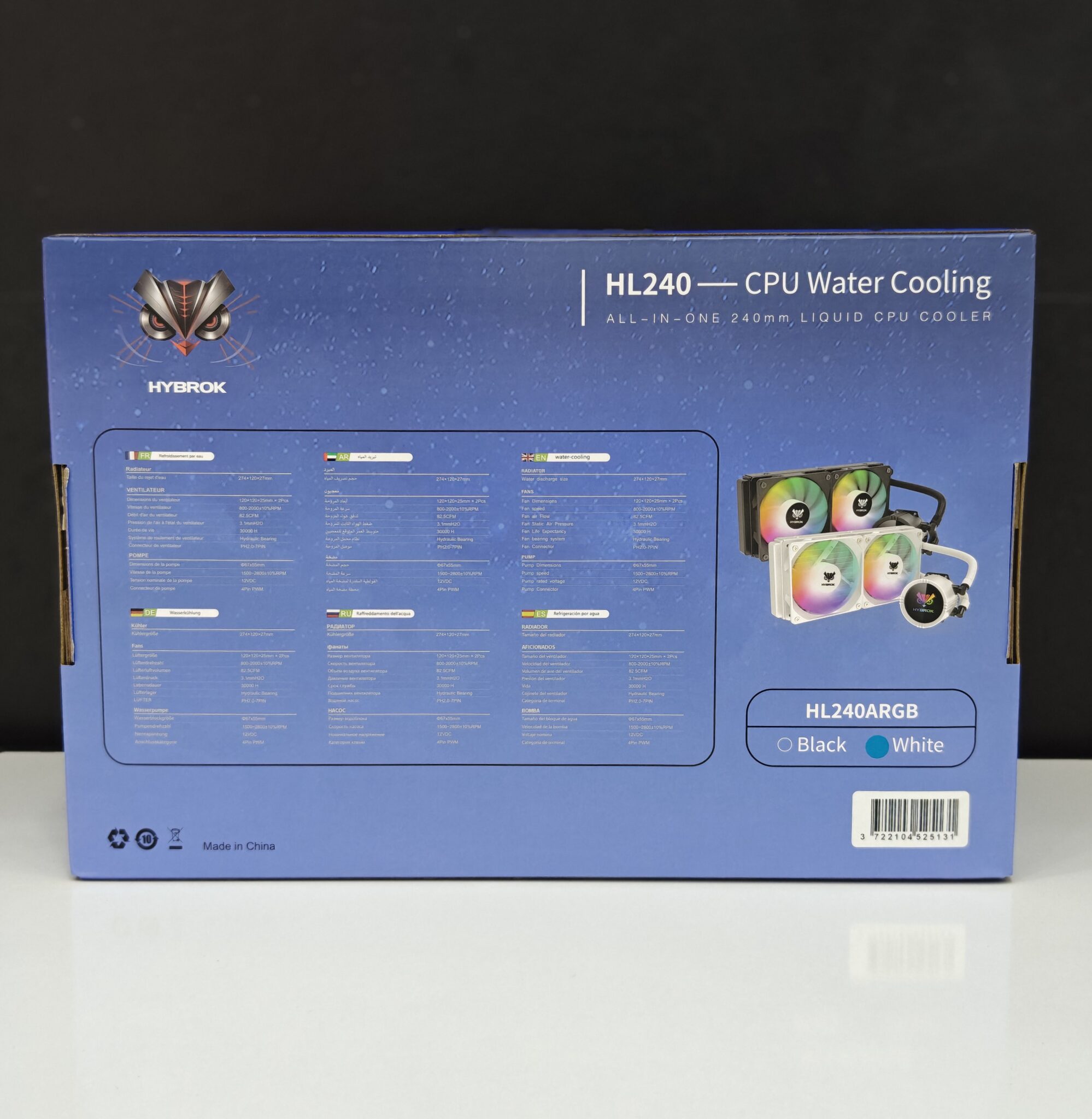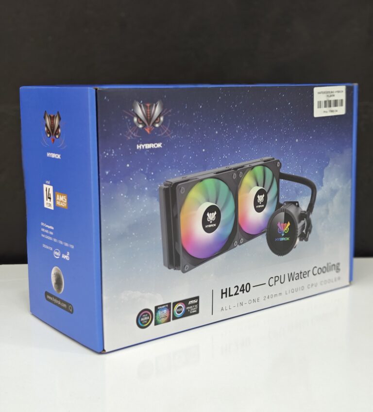 “HYBROK HL240B / HL240 – 240 mm ARGB liquid cooler with dual 120 mm fans, broad socket support (Intel & AMD), and dynamic lighting in sleek black.”