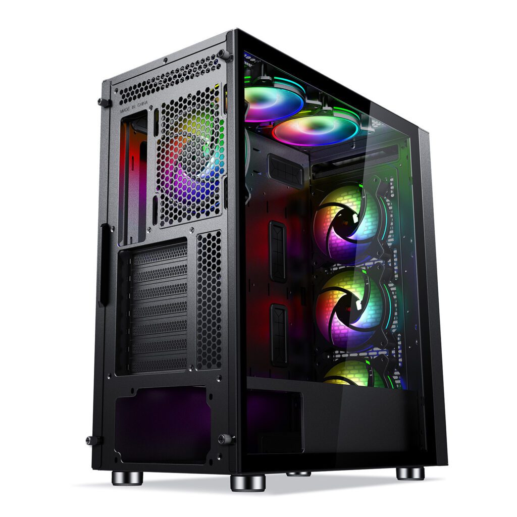 Inside, the RS6 ARGB offers a layout that balances aesthetics and performance: the tempered glass panel ensures your components are on display, while the multiple fan mounts and ARGB lighting create a visually striking system. Even though it’s a mid-tower, its dimensions are optimized for space-efficient setups yet still capable of housing full-sized GPUs and decent cooling systems. Whether you’re assembling a gaming rig, streaming setup or content creation machine, this case offers a strong base with style and utility