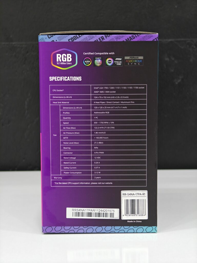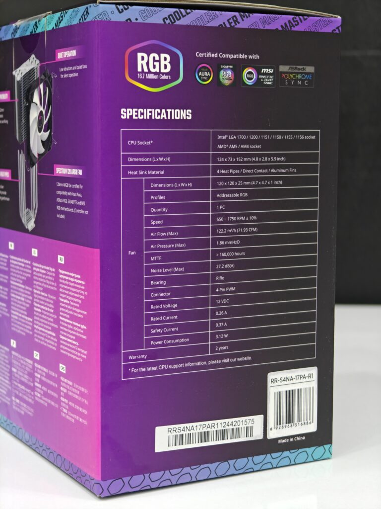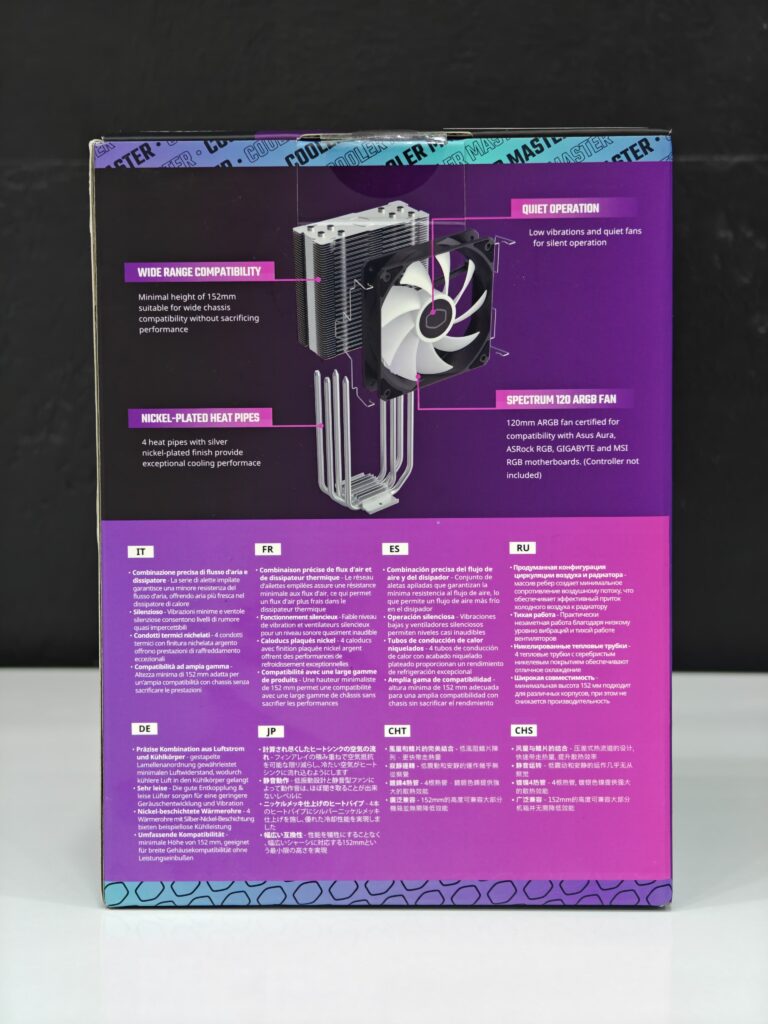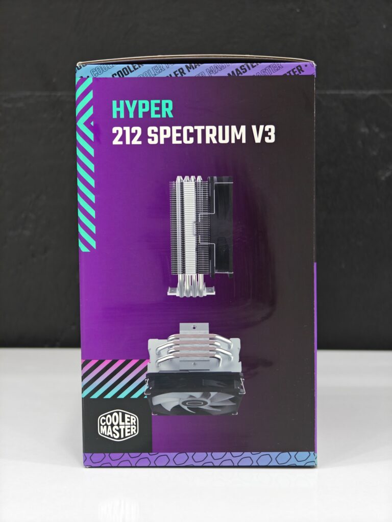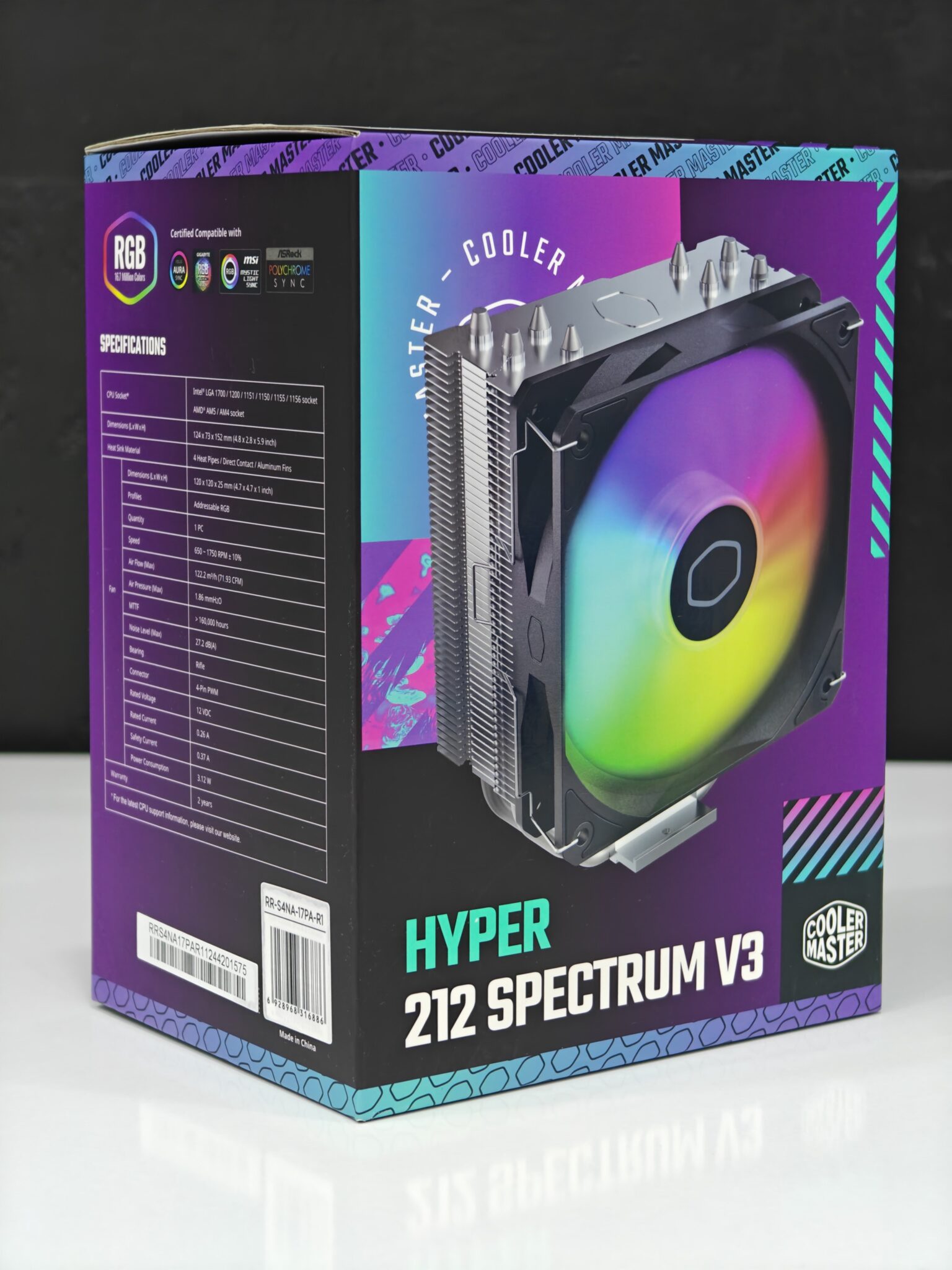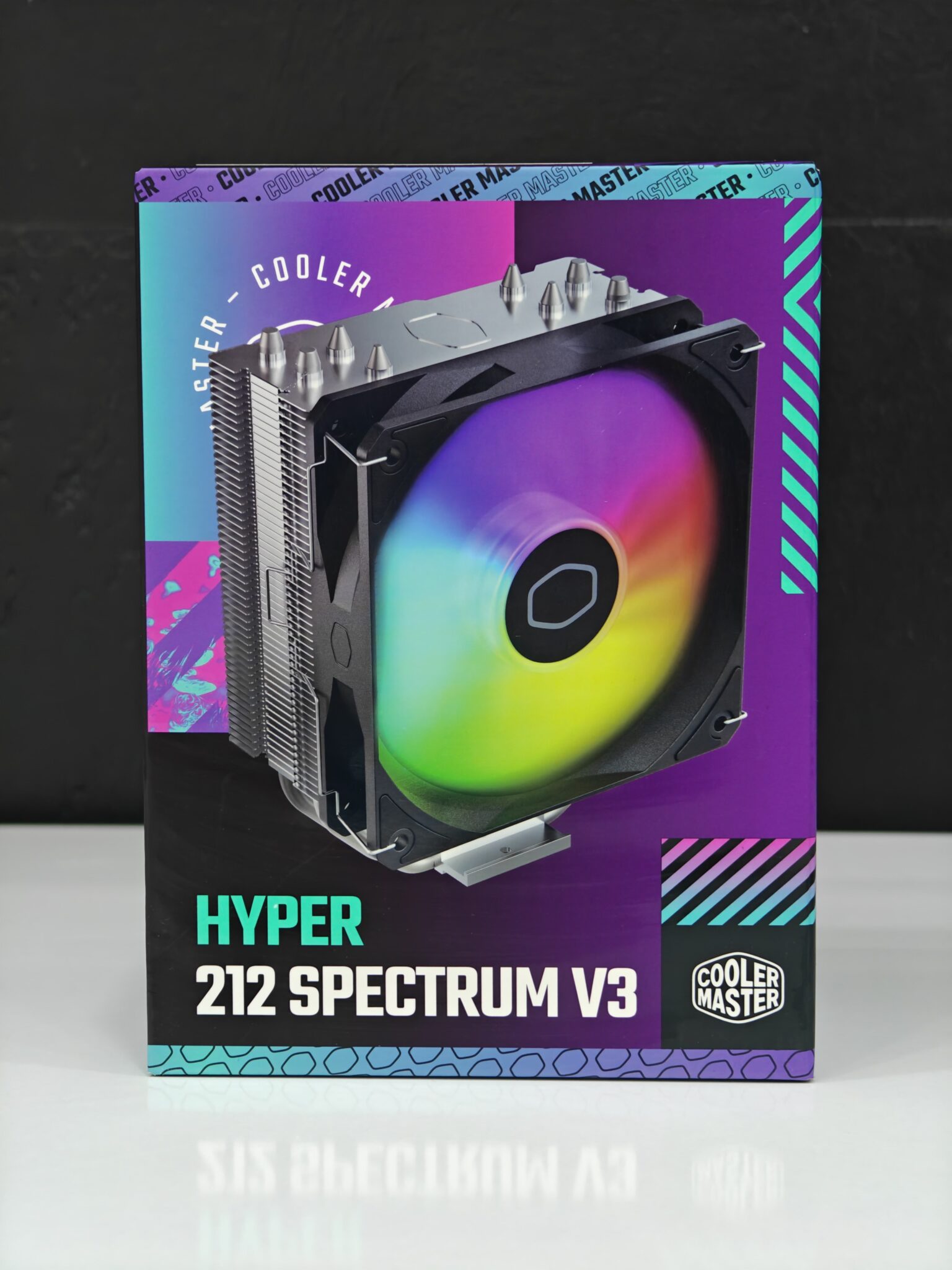 “Cooler Master Hyper 212 Spectrum V3 – 120 mm ARGB air cooler with 4 heat pipes, 71.9 CFM airflow, and full Intel & AMD support.”