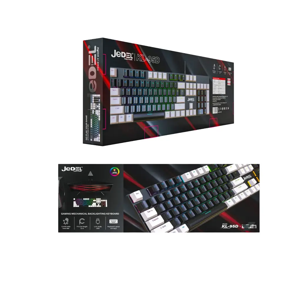 The JEDEL KL95D RGB Mechanical Gaming Keyboard is a robust and performance-oriented peripheral built for gamers who demand a high-tactile, high-durability interface for their desktop. Featuring a full-sized layout, the KL95D provides a complete 104-key experience, including a numeric keypad, making it an excellent choice for users who transition between intense gaming sessions and professional productivity tasks. The keyboard is constructed with a reinforced chassis that feels substantial on the desk, ensuring it stays planted even during the most frantic competitive moments.