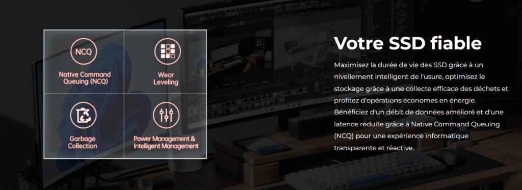The drive supports high IOPS performance, enabling smoother multitasking and better responsiveness for gaming and productivity applications. Built with quality NAND flash and advanced wear-leveling technology, the KINGSPEC SSD ensures long-term reliability and consistent performance even under heavy workloads.