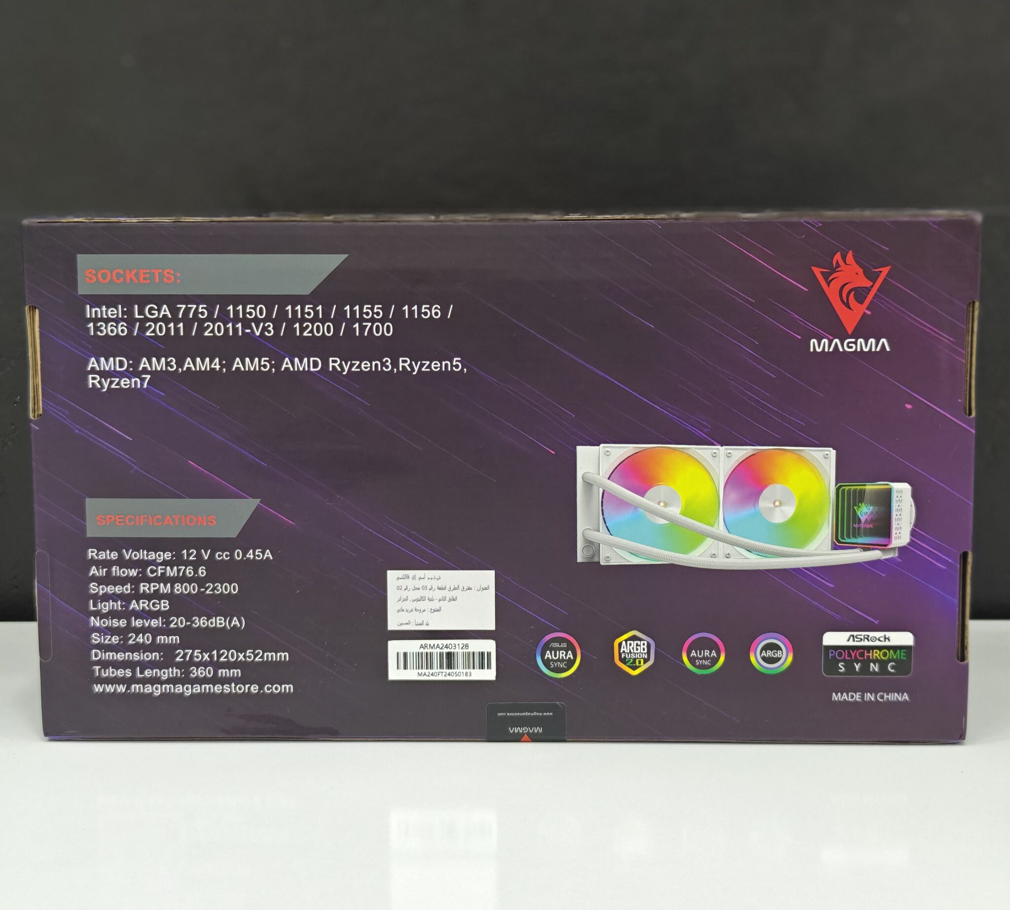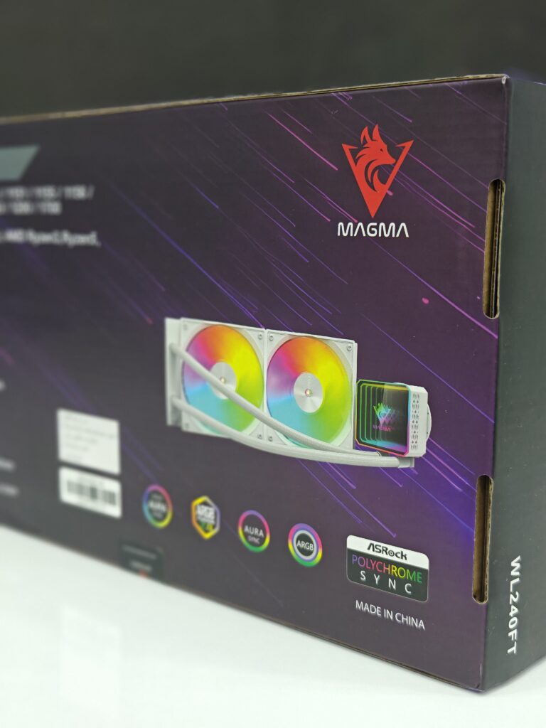 “MAGMA WL240FT ARGB WHITE – 240 mm dual ARGB AIO cooler, ideal for white-themed builds with modern CPU support.”
