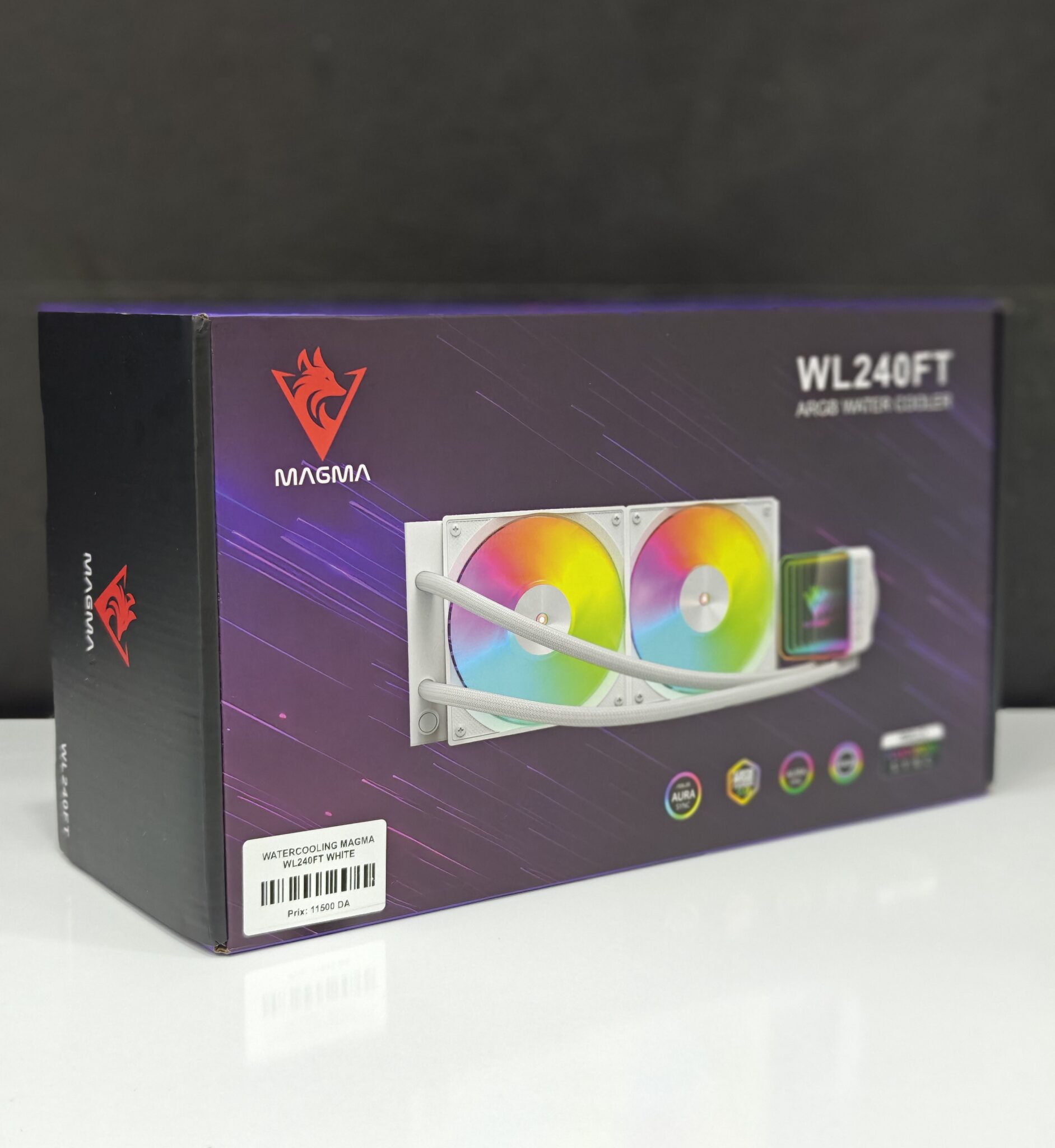 The MAGMA WL240FT ARGB WHITE is a 240 mm all-in-one liquid cooler designed for users who want efficient cooling with elegant white styling. Featuring dual ARGB fans and a white finish, it is ideal for matching white-themed builds. With support likely for the latest Intel and AMD sockets, this cooler aims to combine performance and aesthetics.