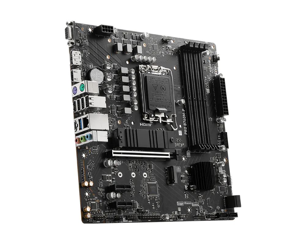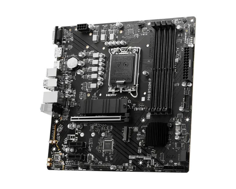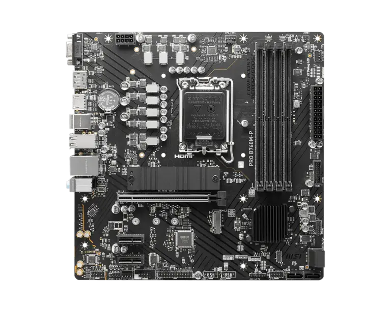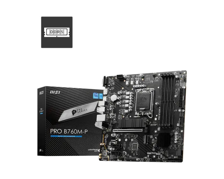 "The MSI PRO B760M-P DDR5 is a robust, future-ready Micro-ATX motherboard that combines elite DDR5 speeds with Lightning Gen 4 storage for a professional-grade computing experience."
