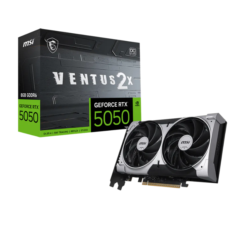 The MSI GeForce RTX 5050 VENTUS 2X OC 8G is a next-generation, performance-segment graphics card based on the cutting-edge NVIDIA Blackwell architecture. Designed for 1080p and entry-level 1440p gaming, this card introduces industry-leading features like DLSS 4 and 4th-Gen Ray Tracing Cores to the mainstream market. The “Ventus” series is known for its “essentials-first” philosophy, providing a sturdy, neutral-colored design that fits easily into any PC build while delivering efficient thermal management.