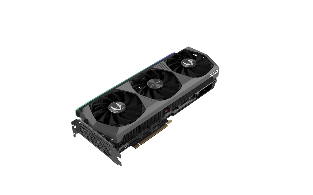 Built with ZOTAC’s IceStorm 2.0 cooling system and large triple-fan design, it maintains cooler temperatures and quieter operation under load. The HoloBlack aesthetic and SPECTRA 2.0 RGB lighting bring visual sophistication to any build. As a “LHR” (Lite Hash Rate) model, it retains full gaming capability but features an Ethereum mining hash-rate limiter — making it a better choice for gamers.