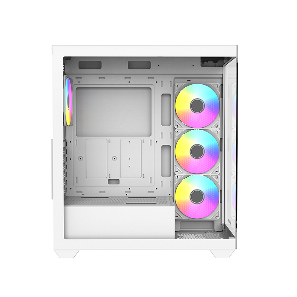 Out of the box, the Infinita I800 comes with four 120 mm ARGB fans, bringing immediate airflow and customizable lighting. With the glass and chrome design reflecting light and components, your build becomes a central display. The front I/O panel offers modern usability with USB 3.0 and USB 2.0 ports plus an LED button for lighting control. With its blend of style, cooling readiness and build-friendly features, the RAIDMAX Infinita I800 Chrome White is ideal for gamers, content creators and anyone looking to build a system with both performance and visual impact.