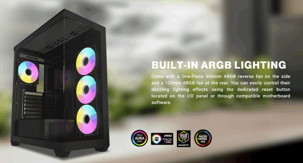 Pre-installed ARGB fans for airflow + lighting right from setup