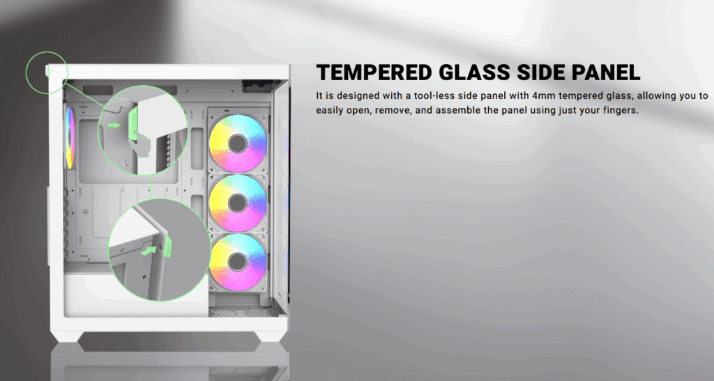 | Side Panel | 4-mm tempered glass-mirror finish |