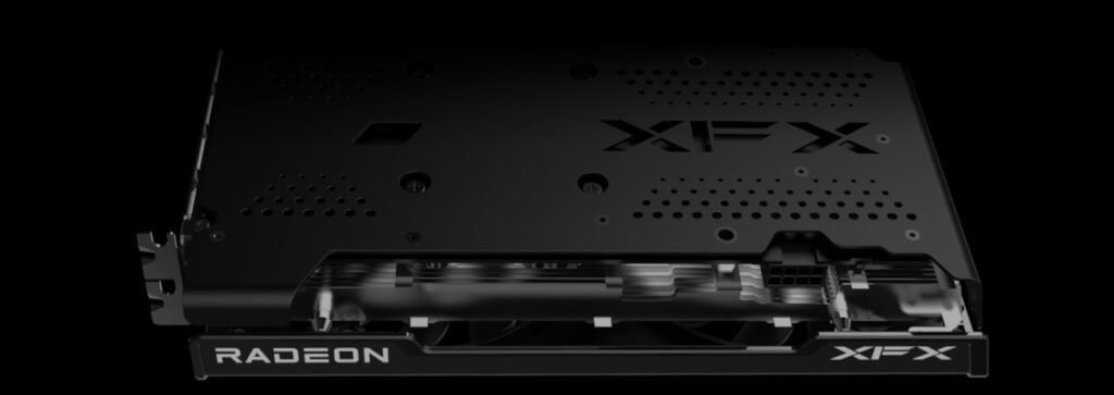 The XFX Ghost Thermal dual-fan cooling system ensures stable temperatures and quiet operation, complemented by a sleek metallic backplate for durability. Ideal for gamers looking for a balance of performance, efficiency, and affordability, this GPU brings the best of next-gen gaming features like DirectX® 12 Ultimate, Radeon™ Anti-Lag, and FidelityFX™ Super Resolution (FSR).