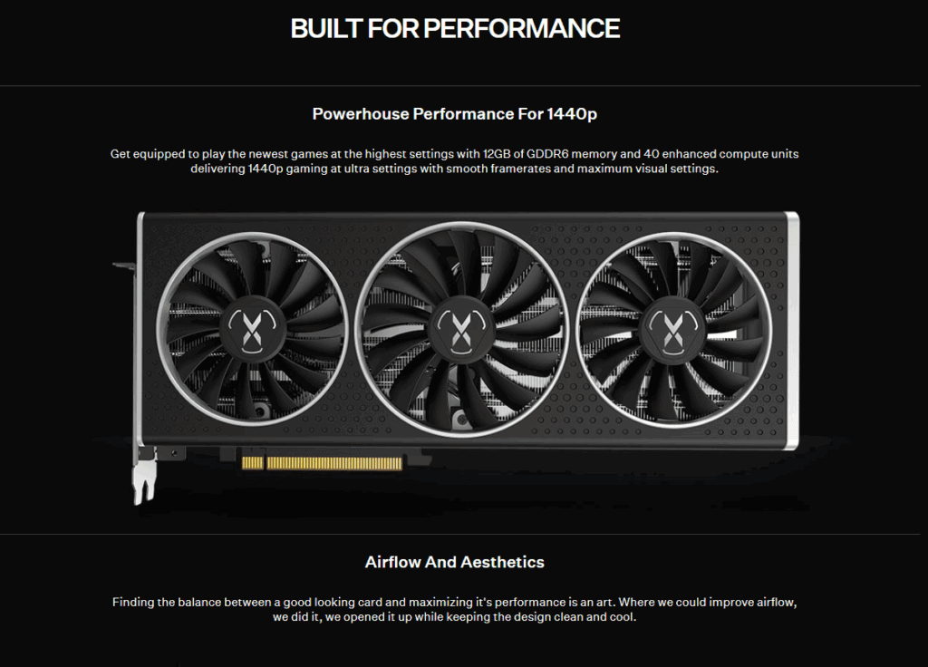 High-performance 12GB GDDR6 graphics card built on AMD’s RDNA 2 architecture, optimized for ultra-smooth 1440p gaming with advanced cooling and exceptional build quality.