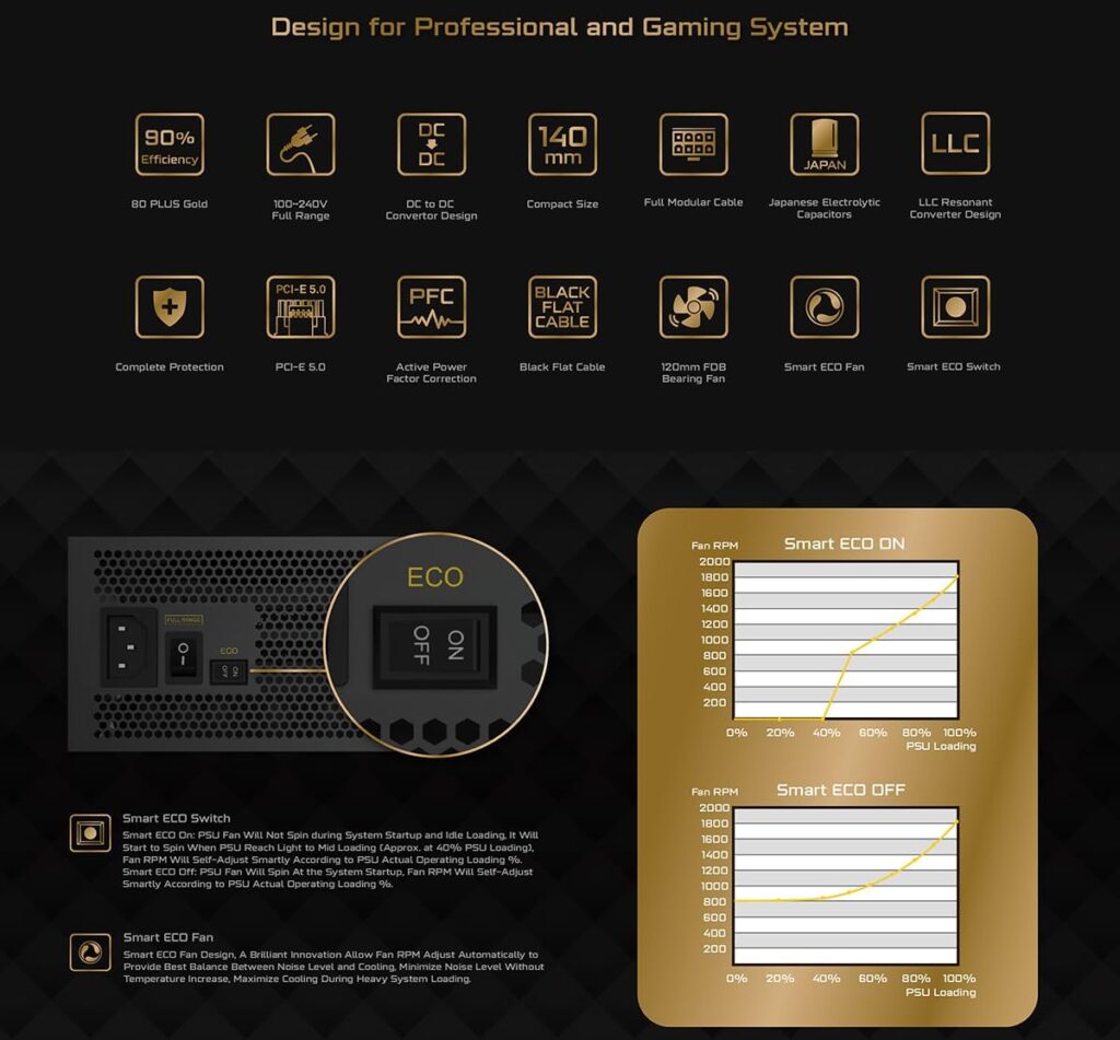 • 80 Plus Gold Certified ensuring up to 90% power efficiency and reduced thermal waste