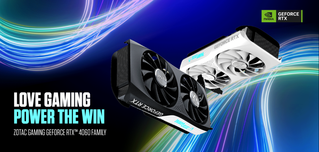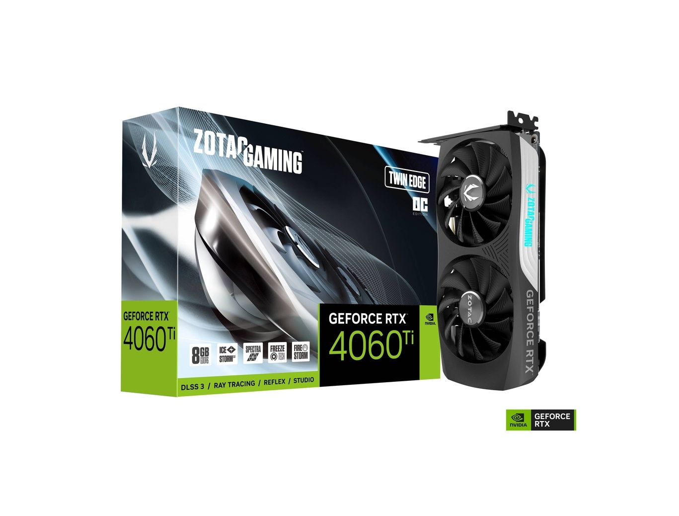 "The ZOTAC RTX 4060 Ti Twin Edge combines the power of DLSS 3 and Ada Lovelace architecture into a highly compatible, dual-fan design for premium high-frame-rate gaming."